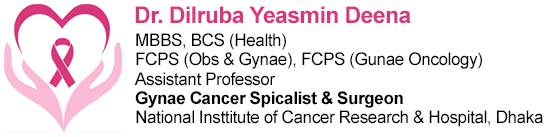 Dr Dilruba Yeasmin Deena is a leading Obstetrician, Gynaecologist and female Gynaecological Oncologist in Bangladesh. She completed her MBBS in 2001 from Chittagong Medical College. She entered in Govt. service through 24th BCS. Thereafter She completed FCPS in Obstetrics & Gynaecology in January 2010 & FCPS in Gynaecological Oncology in January 2021 from Bangladesh College of Physicians and Surgeons (BCPS).